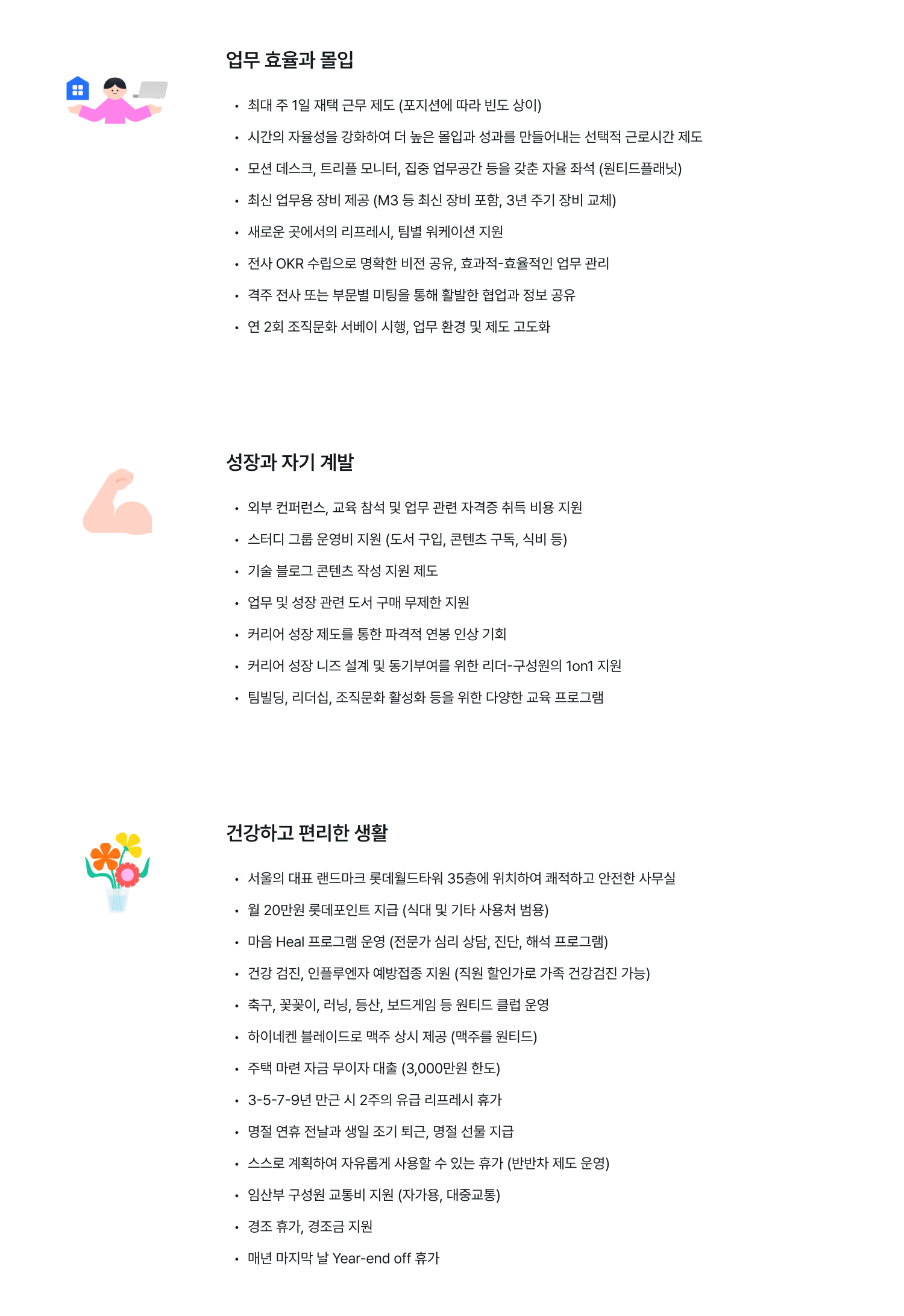 원티드랩의 성장과 몰입 지원 항목