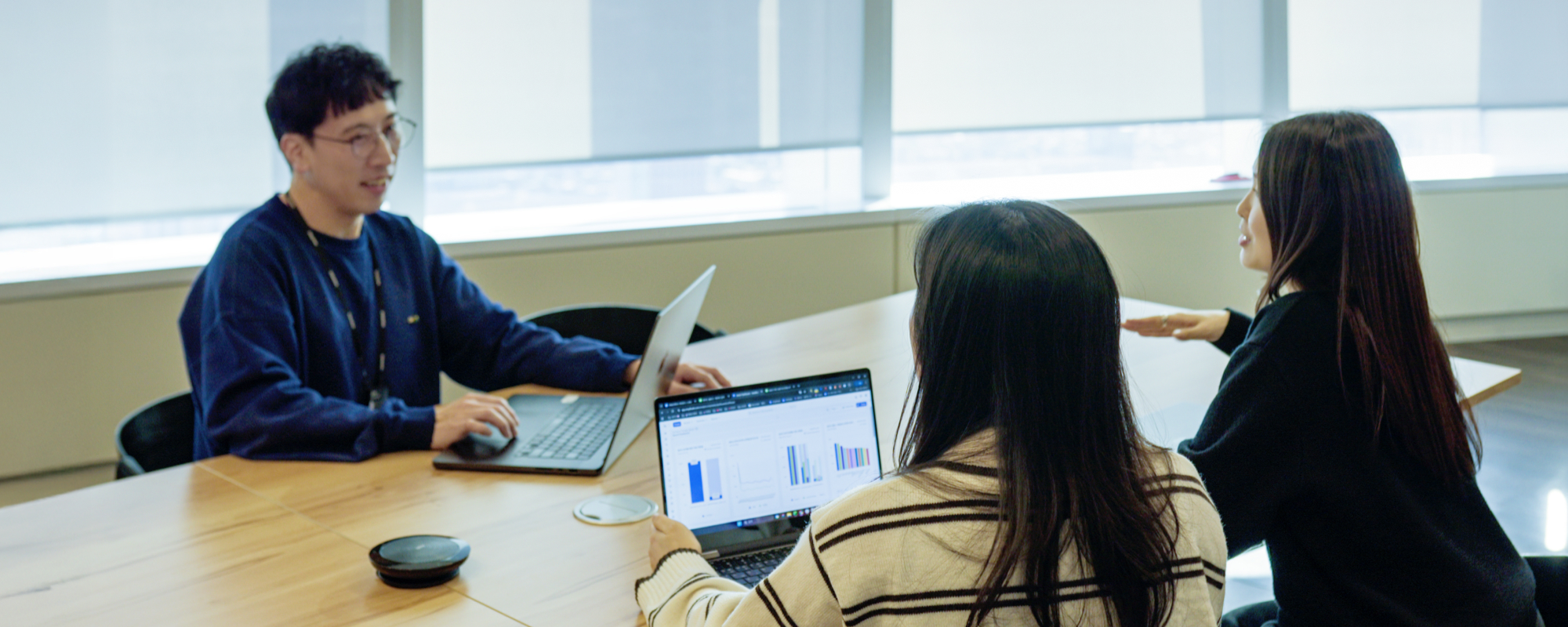 예전에 팀 워크숍에서 강점 진단을 한 적이 있는데, 그때 제가 ‘복잡한 상황을 명쾌하게 정리해서 시너지를 만드는 커뮤니케이터’라는 결과를 받았거든요. 실제로 업무를 할 때도 이 강점을 살리려 노력해요. 우리 파트가 마주하는 수많은 데이터와 복잡한 과제들을 하나로 엮어, 팀원들이 더 큰 성과를 낼 수 있도록 돕는 역할을 하고 있습니다.